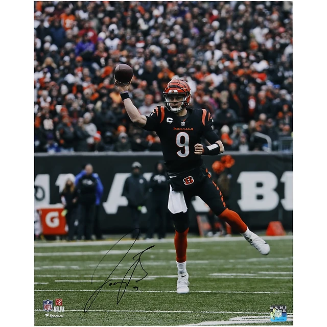 Photographie verticale autographiée de Joe Burrow Cincinnati Bengals 16" x 20" en maillot noir