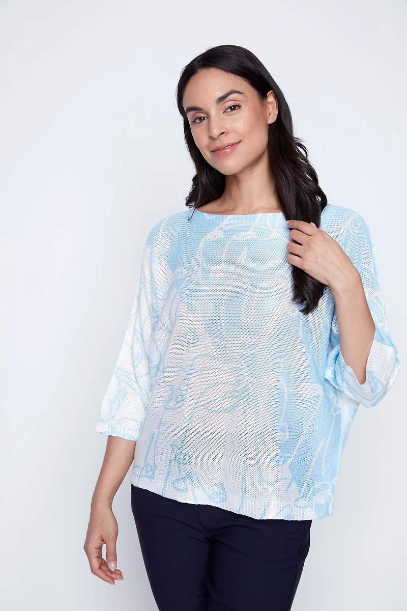 Embrace your inner artist with this charming Picasso print sweater from Via Vitale. Crafted in Italy with a delicate crochet knit fabric, it features a relaxed round neckline and three-quarter dolman sleeves that drape beautifully for effortless style. Perfect for adding a touch of creative flair to your everyday wardrobe—whether you're channeling gallery vibes or just feeling inspired.