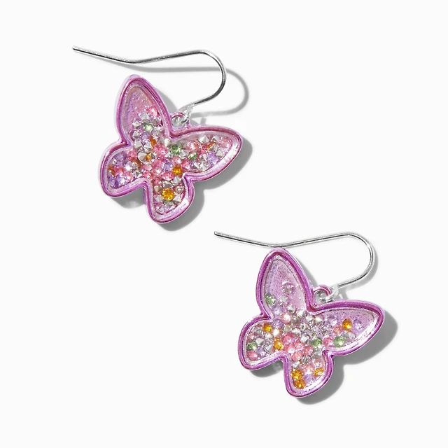 Pink Butterfly Confetti Shaker Drop Earrings