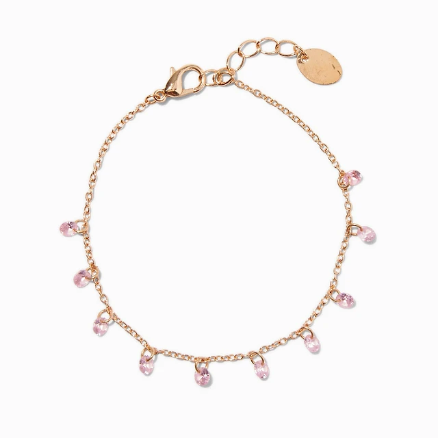 Pink Cubic Zirconia Confetti Charm Gold-tone Chain Bracelet