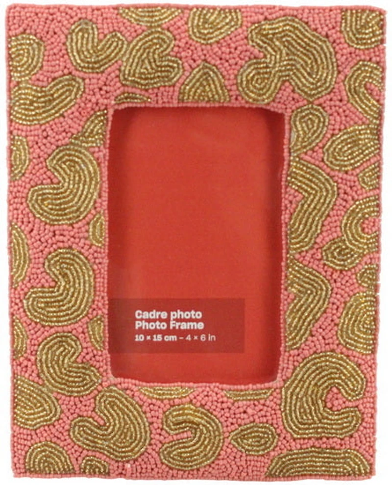 Pink & gold glass beads hand embroidered animal print design pho