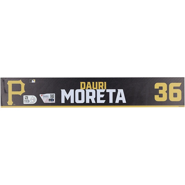 Plaque signalétique noire #36 émise par les joueurs des Pirates de Pittsburgh de Dauri Moreta lors de l'entraînement de printemps de la MLB 2024
