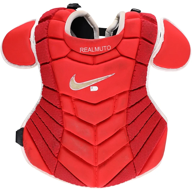 Plastron Nike rouge de J.T. Realmuto, utilisé lors du match des Phillies de Philadelphie contre les Braves d'Atlanta, le 31 août 2024