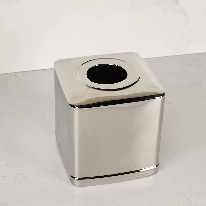 Sleek and refined, the Platinum tissue holder adds a polished finishing touch to bathroom décor. Made from electroplated resin, it offers the look of metal with the practicality of a lightweight and durable material, ideal for everyday use.