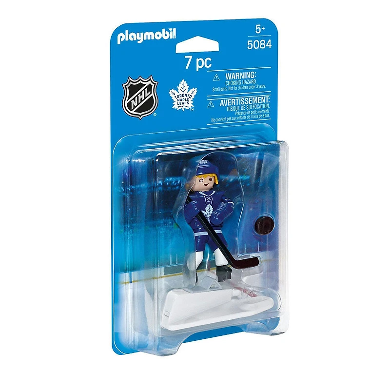 Skate down the ice with the PLAYMOBIL NHL Toronto Maple Leafs Player. Skate, pass and shoot in the net to seal the victory and bring home the Cup!