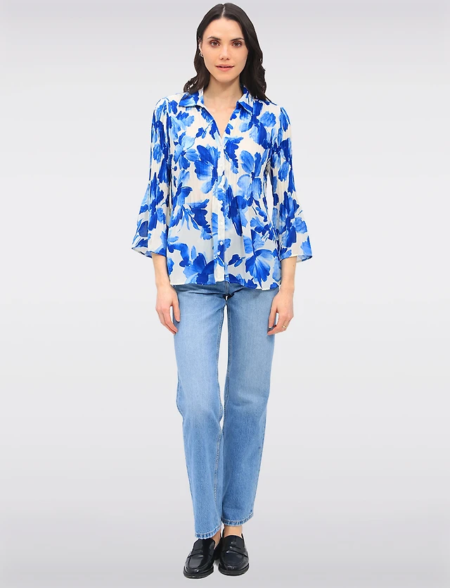 Pleated Button-Down Shirt Vibrant Print with Elegant Flared Sleeves by Ninety