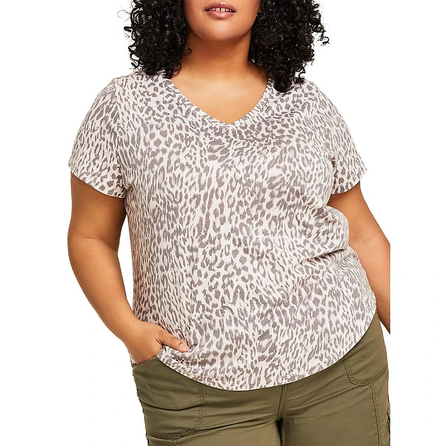 Plus Animal-Print Perfect V-Neck T-Shirt