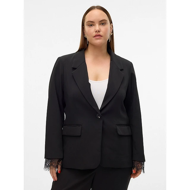 Plus Clulu Lace-Cuff Fitted Blazer