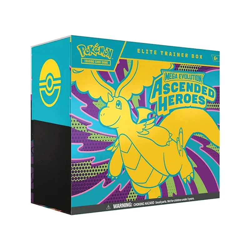 The Pokémon TCG: Mega Evolution—Ascended Heroes Elite Trainer Box includes: 9 Pokémon TCG: Mega Evolution—Ascended Heroes booster packs 1 full-art foil promo card featuring N’s Zekrom 65 card sleeves 40 Pokémon TCG Energy cards A player’s guide to the Mega Evolution—Ascended Heroes expansion 6 damage-counter dice 1 competition-legal coin-flip die 1 plastic coin A collector’s box to hold everything, with 6 dividers to keep it organized A code card for Pokémon Trading Card Game Live