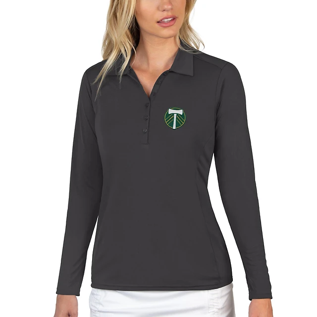 Polo à manches longues Antigua Heather Grey pour femme, hommage aux Portland Timbers