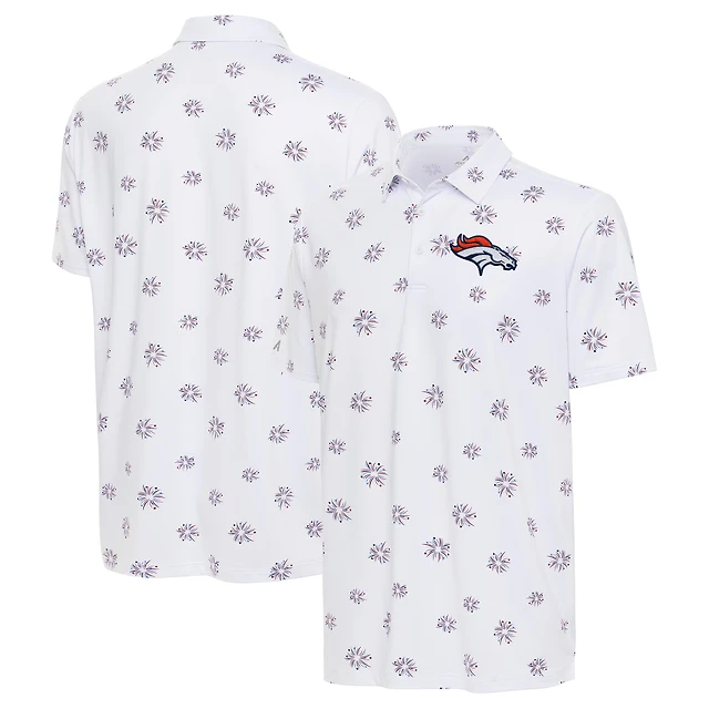 Polo blanc antigua pour homme avec feux d'artifice des Denver Broncos
