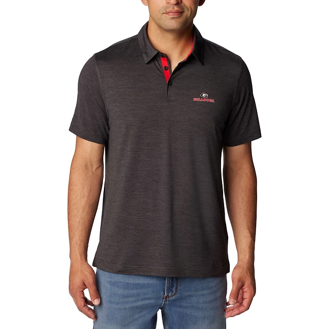 Polo Columbia Heather Black pour homme Georgia Bulldogs Tech Trail Omni-Wick