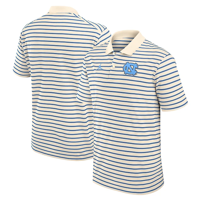 Polo Dri-FIT rayé à logo principal Jordan Brand Tan/Carolina Blue pour homme des Tar Heels de Caroline du Nord