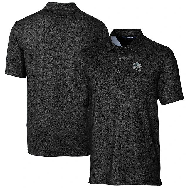 Polo extensible à imprimé micro-fleurs pour homme Cutter & Buck, motif casque des Carolina Panthers, noir