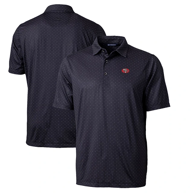 Polo extensible noir à imprimé double pois Cutter & Buck pour homme, logo rétro des 49ers de San Francisco, taille grande et
