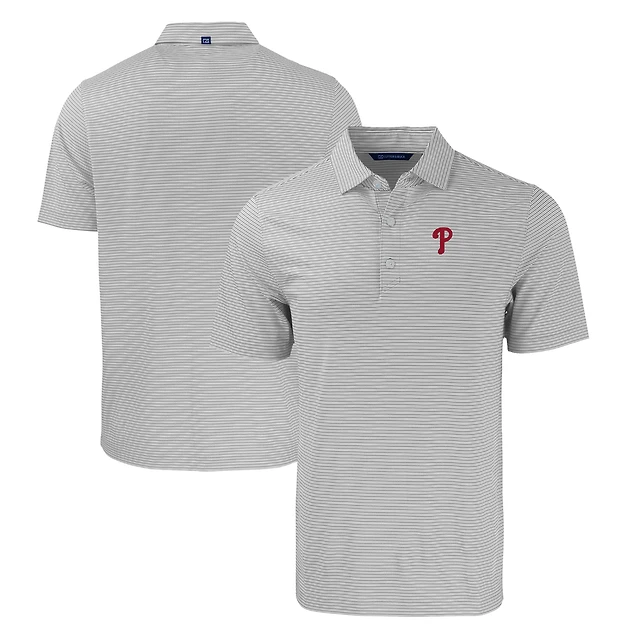 Polo extensible recyclé à double rayure Forge Eco pour homme, gris/blanc, Cutter & Buck, des Philadelphia Phillies