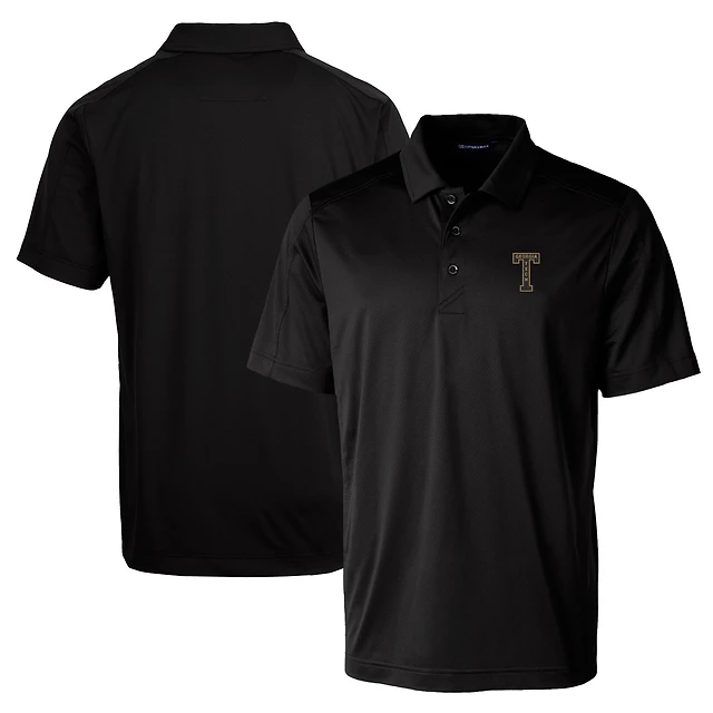 Polo extensible texturé pour homme Cutter & Buck noir avec logo de l'équipe Georgia Tech Yellow Jackets, grande taille