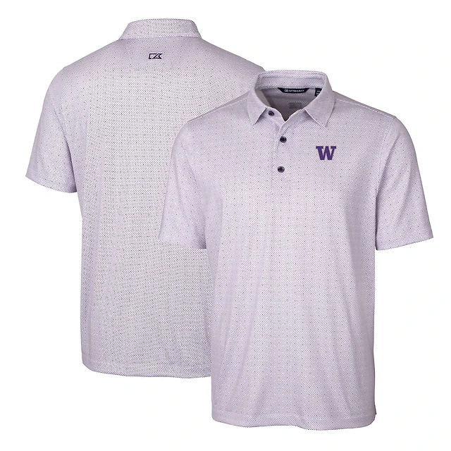Polo extensible violet à imprimé double point Pike pour homme, modèle Cutter & Buck des Washington Huskies, taille grande et