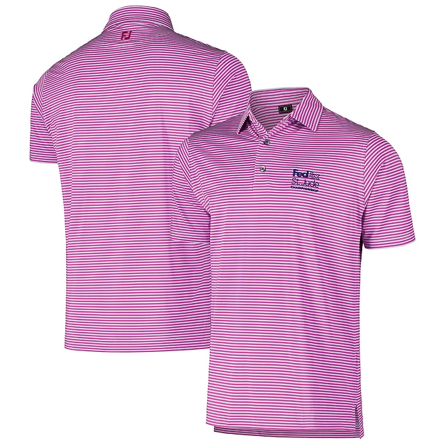 Polo FootJoy rose FedEx St. Jude Championship ProDry Performance Lisle Feeder Stripe pour hommes