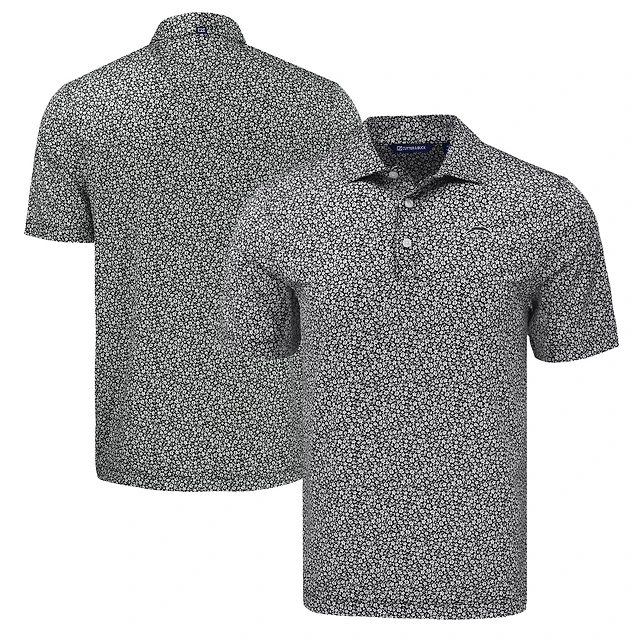 Men's Cutter & Buck Black Tampa Bay Rays Pike Eco Flora Print Recycled Polo