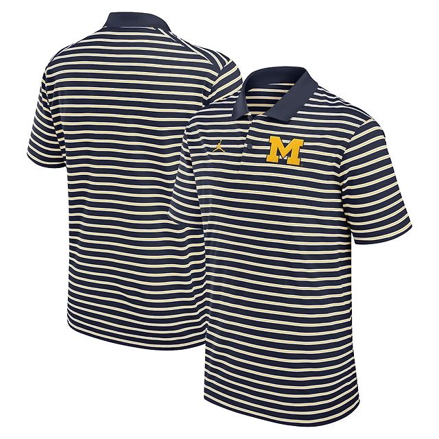 Polo Jordan Brand Dri-FIT rayé bleu marine/blanc pour homme des Michigan Wolverines Primetime Victory
