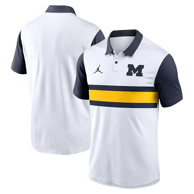 Polo Jordan Brand Vapor Dri-FIT pour homme, blanc/bleu marine, motif campus des Wolverines du Michigan