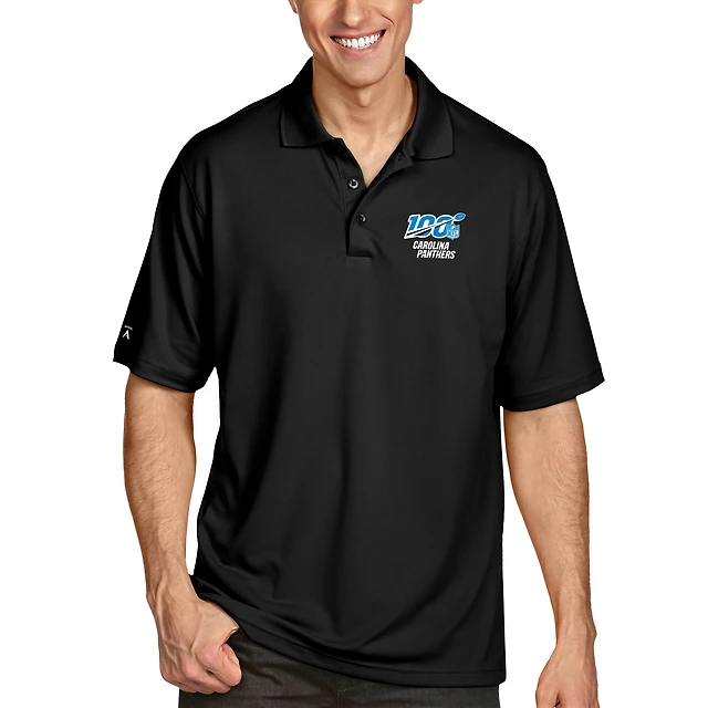 Polo NFL 100 Pique Xtra-Lite noir Antigua pour homme des Carolina Panthers