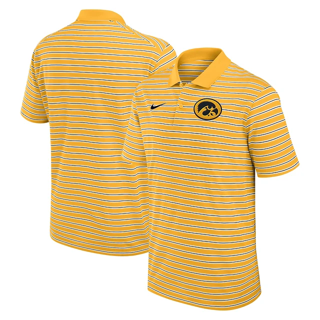 Polo Nike Dri-FIT rayé Primetime Victory pour homme, couleur or/blanc, Iowa Hawkeyes