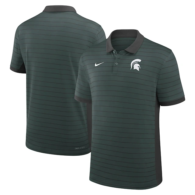 Polo Nike vert Dri-FIT pour homme, coupe début de saison 2025, Michigan State Spartans, entraîneurs, avec rayures Victory