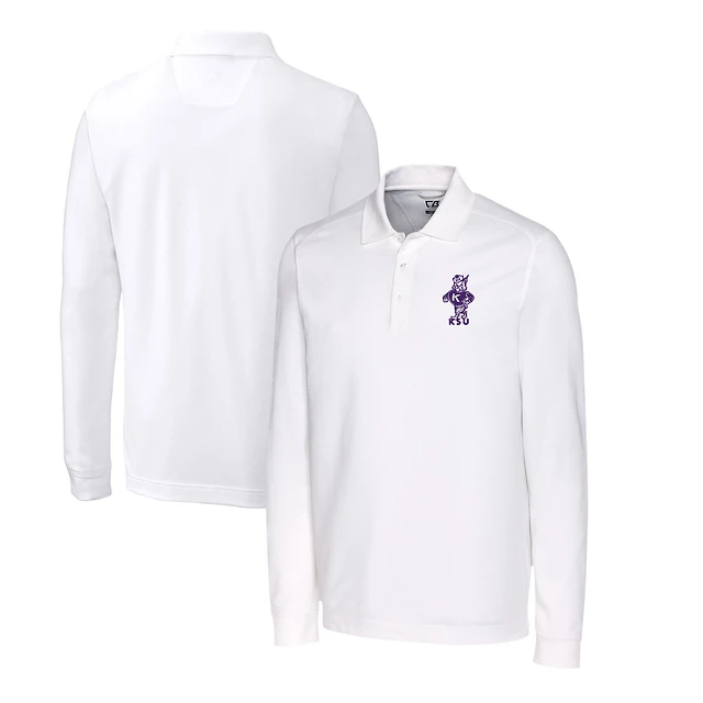 Polo piqué à manches longues DryTec Tri-Blend blanc pour homme, Cutter & Buck, Kansas State Wildcats, grandes tailles