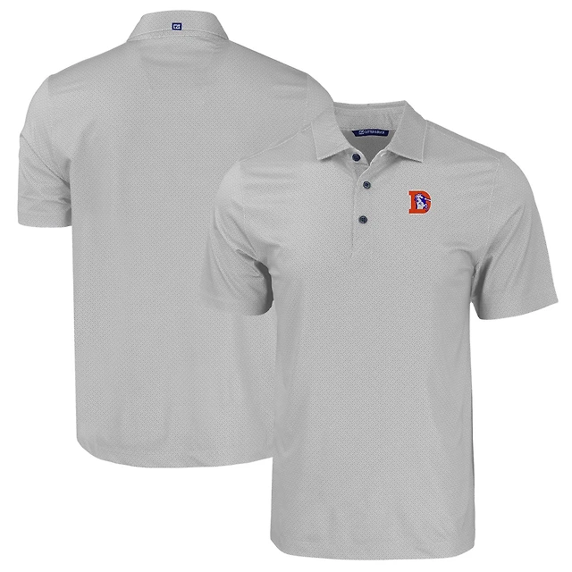 Polo recyclé extensible à imprimé géométrique ton sur pour homme, coupeur et buck, gris, Denver Broncos Throwback, grande taille, Pike Eco