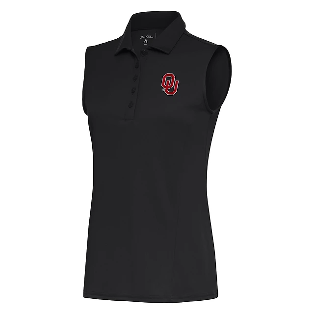 Polo sans manches Antigua Charcoal Tribute pour femme, Oklahoma Sooners