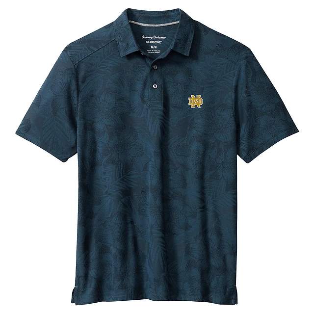 Polo Tommy Bahama bleu marine pour homme, motif Notre Dame Fighting Irish Palm Fresco Hibiscus IslandZone®
