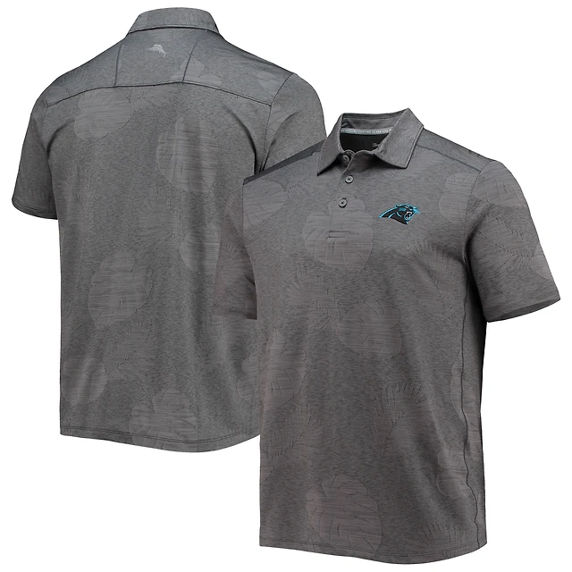 Polo Tommy Bahama Charcoal Carolina Panthers Palm Coast Delray Frond Allover IslandZone pour homme