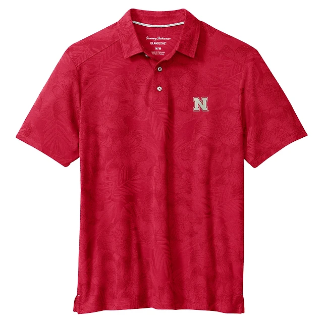 Polo Tommy Bahama Scarlet Nebraska Huskers Palm Fresco Hibiscus IslandZone® pour homme