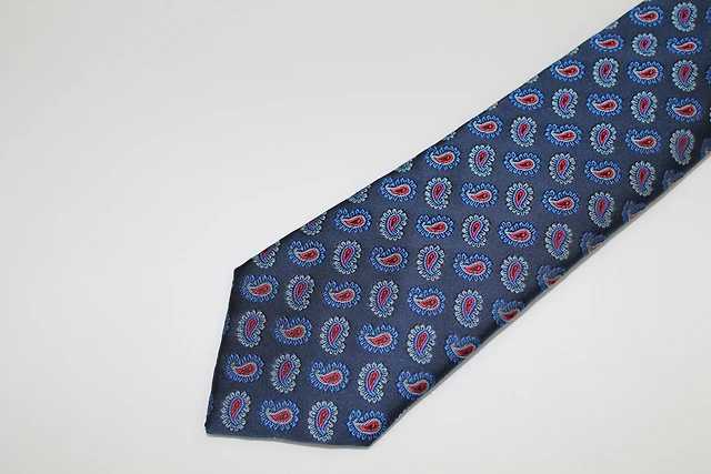 Poly/Silk Small Paisley Tie - Burgundy / Blue