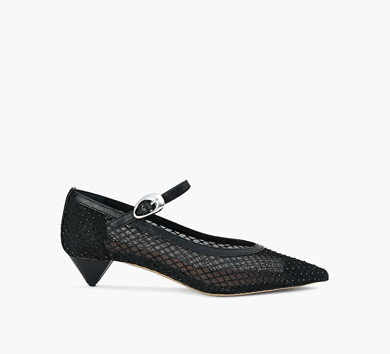 Mimosa is never one to shy away from showcasing its whimsical nature, and the Pond Mary Janes are no exception. Borrowing from the flapper silhouettes of the 1920s, this pair is stacked on a low kitten heel before fastening with a sleek buckle-adorned strap. Cut to a pointed-toe profile, its dainty mesh upper is awash with a sea of glittering rhinestones as a final romantic flourish.