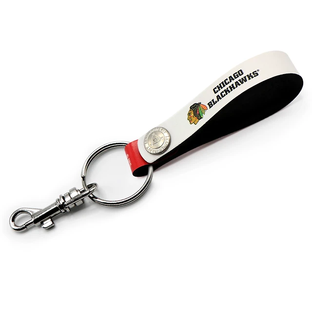 Porte-clés à boucle en cuir personnalisé des Blackhawks de Chicago blancs