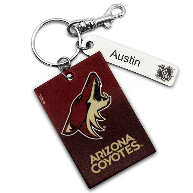 Porte-clés rectangle en cuir personnalisé Coyotes de l'Arizona bordeaux