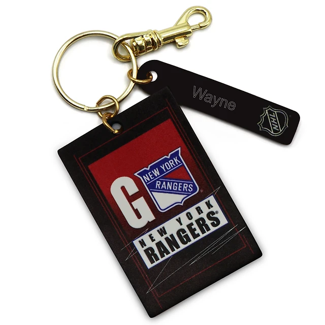 Porte-clés rectangle en cuir personnalisé des Rangers de New York noirs
