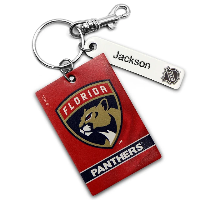 Porte-clés rectangle en cuir personnalisé Red Florida Panthers
