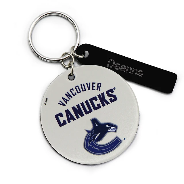 Porte-clés rond en cuir personnalisé des Canucks de Vancouver blancs