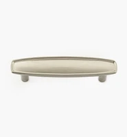 This handle has a narrow rim and tapered posts. Available in satin chrome and weathered nickel finishes. It has an overall width of 4" and measures 3" center to center.