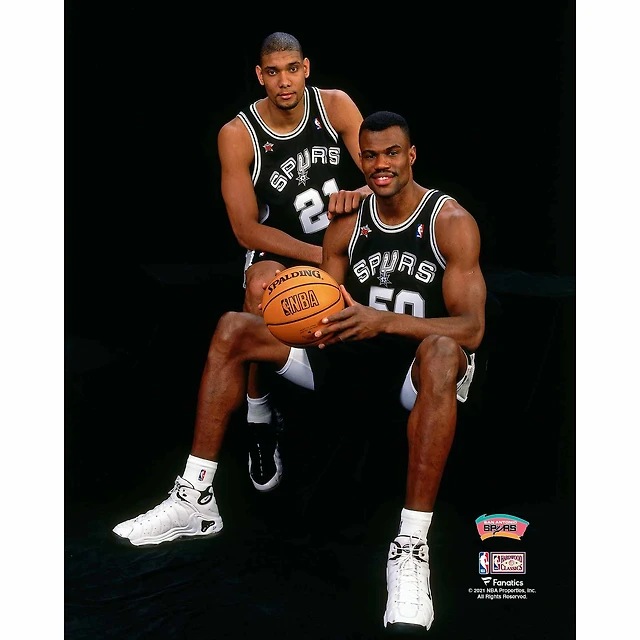 Portrait non signé de David Robinson des San Antonio Spurs lors du match étoiles 1998 avec la photographie Tim Duncan