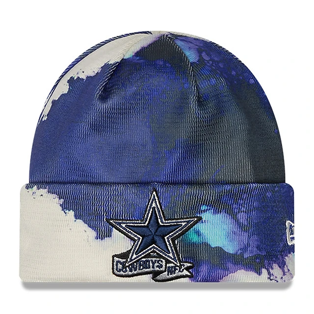 Pour homme New Era Dallas Cowboys 2022 Sideline - Bleu marine - Bonnet en tricot à revers teint à l'encre
