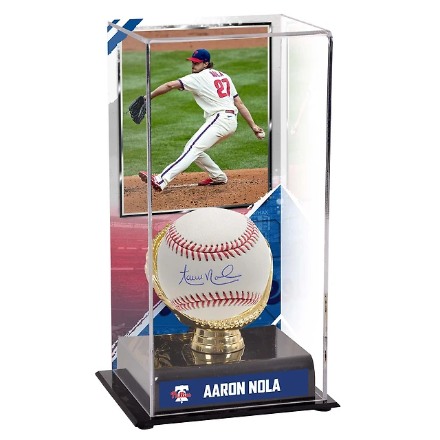 Présentoir de baseball autographié et sublimé avec image d'Aaron Nola des Philadelphia Phillies