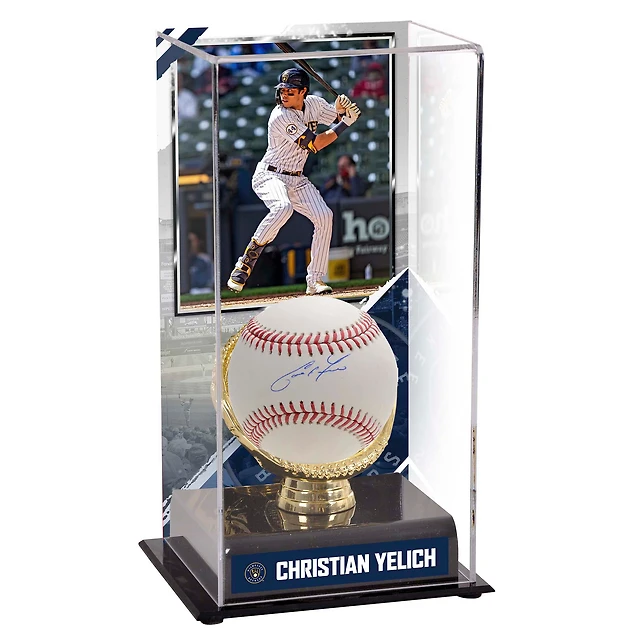Présentoir de baseball autographié et sublimé Christian Yelich Milwaukee Brewers avec image