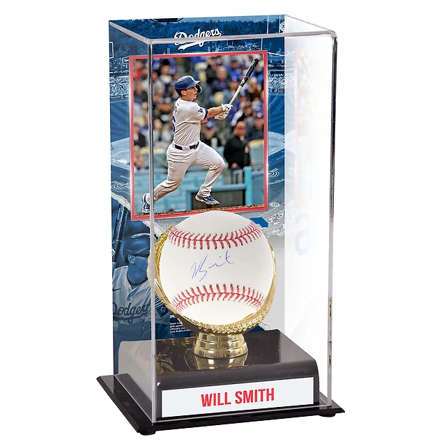 Présentoir de gants de baseball autographiés et sublimés en or des Dodgers de Los Angeles de Will Smith avec image