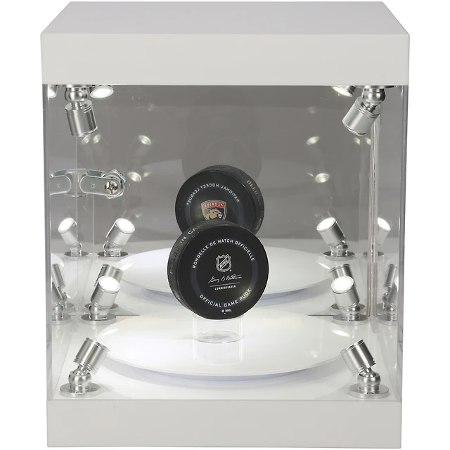 Présentoir de rondelles de hockey à éclairage LED rotatif de qualité supérieure