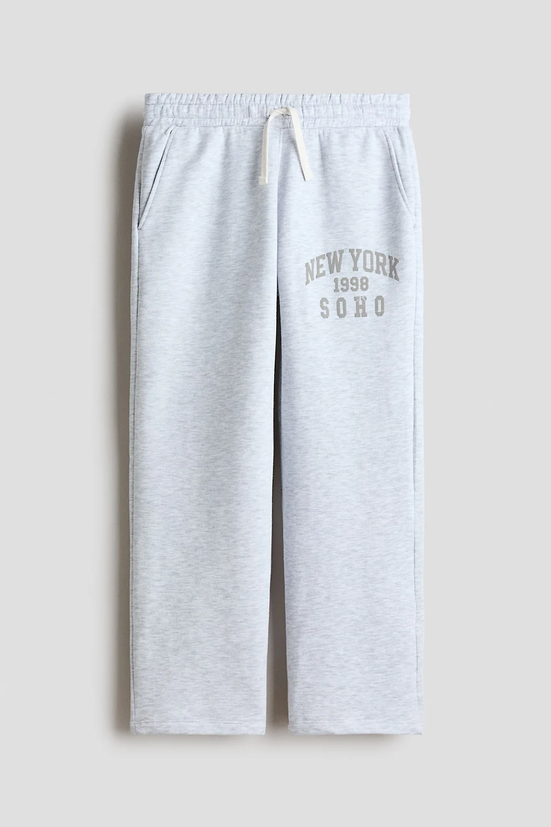 Loose-fit sweatpant joggers in lightweight fabric with a printed design and brushed inside. Elasticized, drawstring waistband and diagonal side pockets.